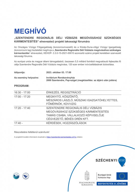 Meghívó lakossági fórumra Szentendre Regionális Déli Vízbázis megóvása érdekében