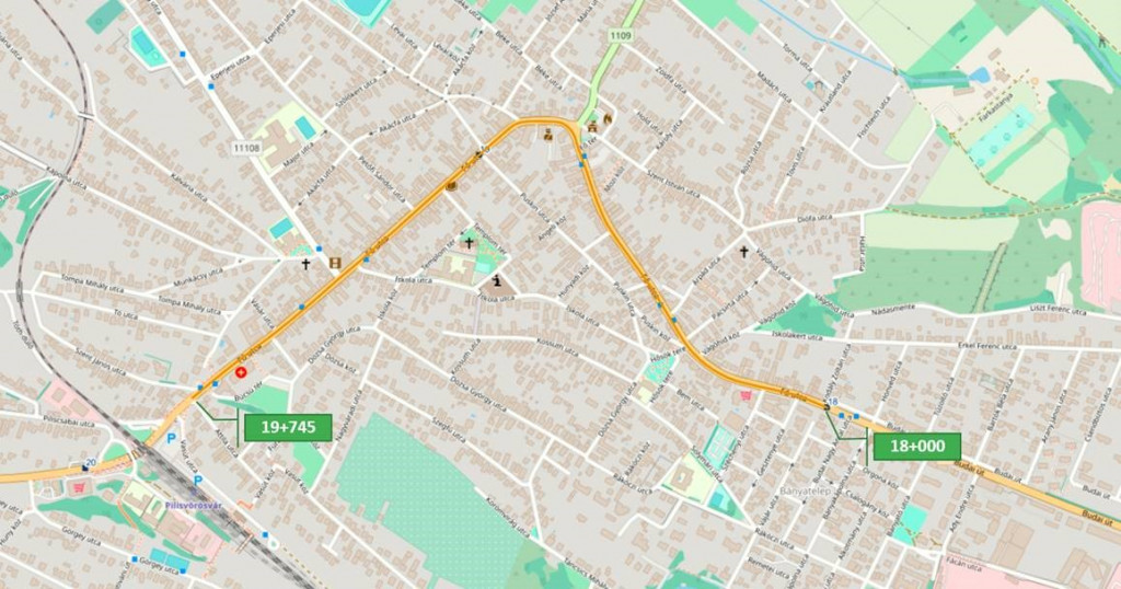 Az alábbi térképrészlet mutatja a beavatkozással érintett szakaszt: