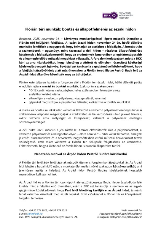 Flórián téri munkák: bontás és állapotfelmérés az északi hídon