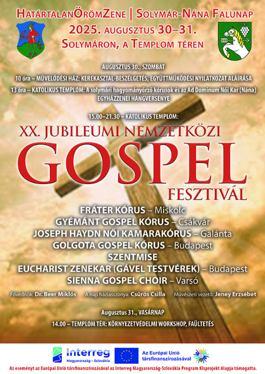 A várható esős, zivataros időjárás miatt a Gospel Fesztivál változatlan időpontokban a solymári Katolikus Templomban kerül megrendezésre a Templom téren.