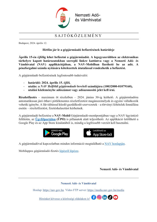 Hétfőn jár le a gépjárműadó befizetésének határideje!