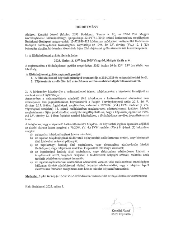 Hirdetmény - Földtulajdonosi gyűlés!