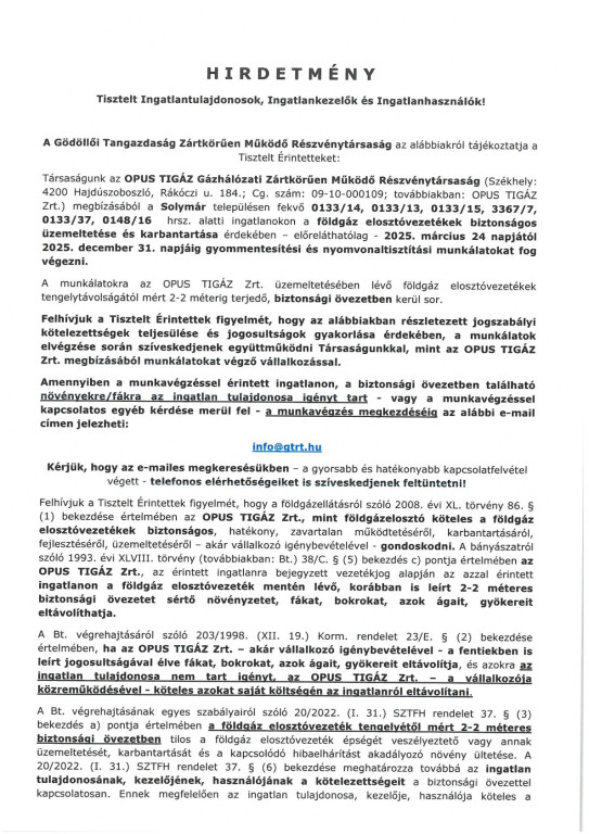 Hirdetmény gyommentesítési és nyomvonaltisztítási munkálatokról!