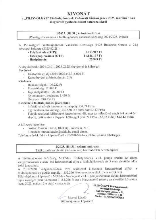 Hirdetmény - Kivonat