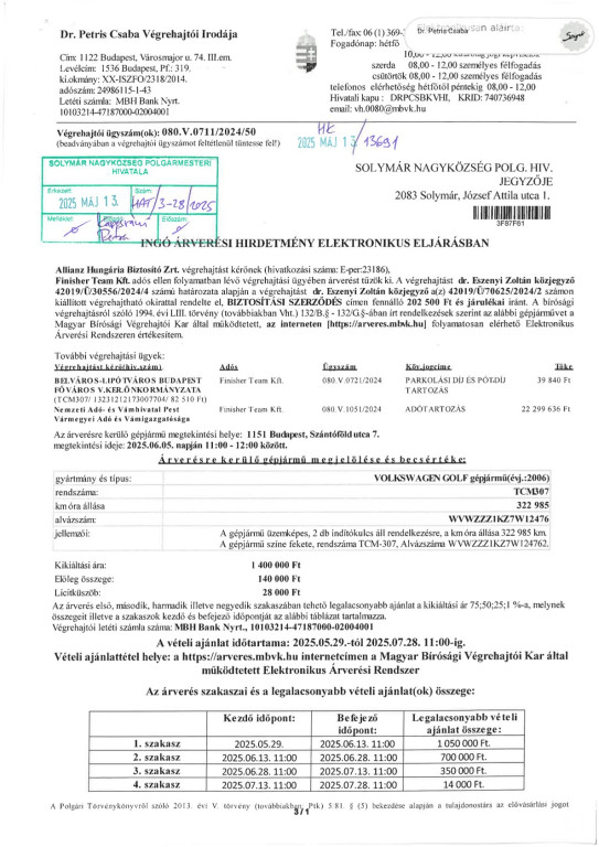 Ingó árverési hirdetmény!