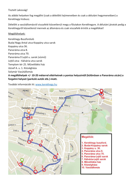 A járatok visszafelé nem érintik a Templom teret, közvetlenül a főutakon mennek fel a Kerekhegyre!