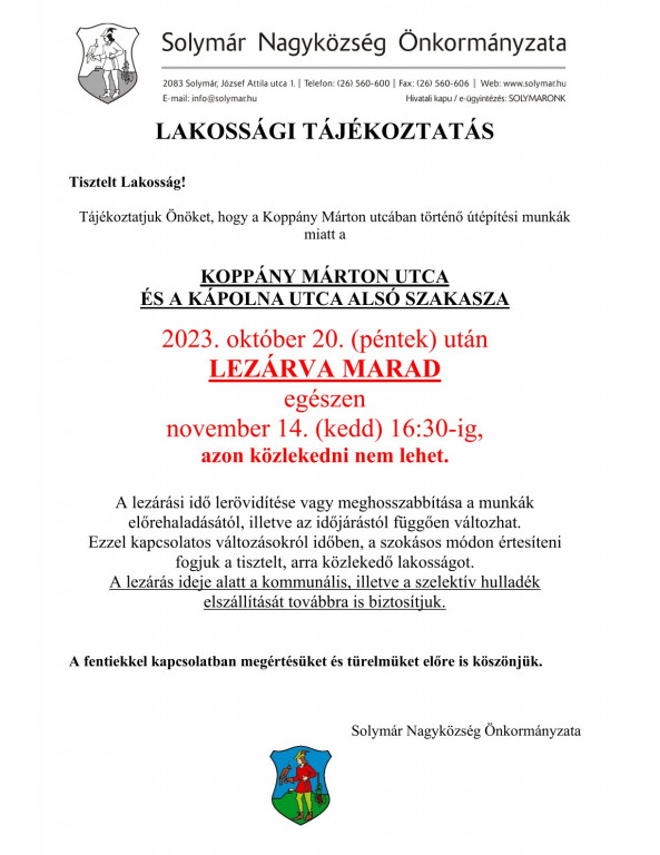 Hétfő: 8:00-12:30; 13:00-18:00 / Kedd: 8:00-12:30; 13:00-16:00 / Szerda: 8:00-12:30; 13:00-16:30 / Csütörtök: 8:00-12:30; 13:00-16:00 / Péntek: 8:00-13:30