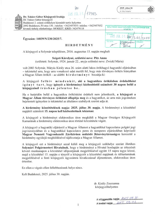 Hétfő: 8:00-12:30; 13:00-18:00 / Kedd: 8:00-12:30; 13:00-16:00 / Szerda: 8:00-12:30; 13:00-16:30 / Csütörtök: 8:00-12:30; 13:00-16:00 / Péntek: 8:00-13:30