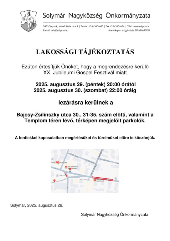Lakossági tájékoztató ideiglenes parkolólezárásról!
