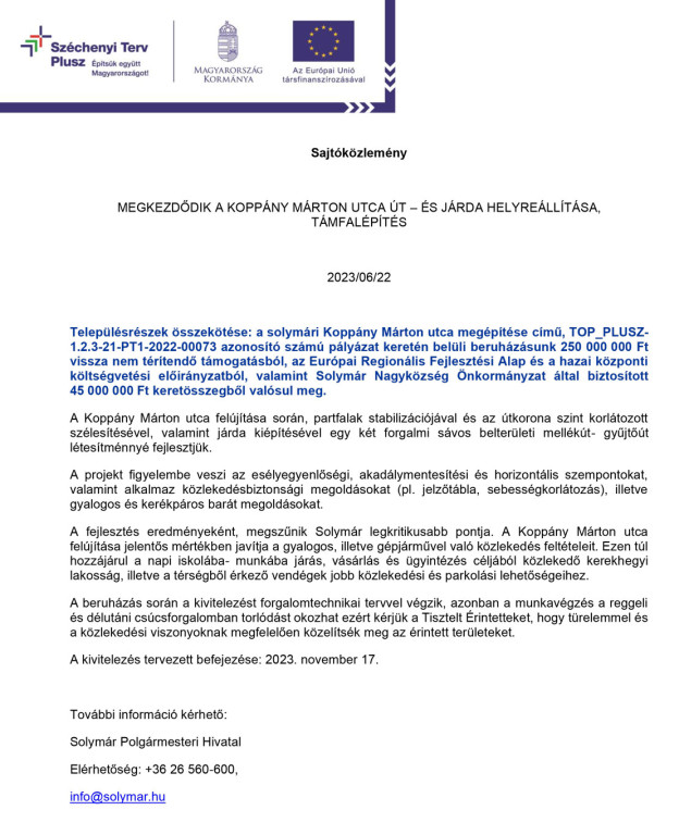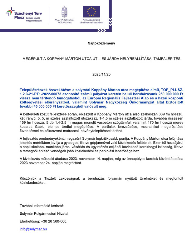 MEGÉPÜLT A KOPPÁNY MÁRTON UTCA ÚT - ÉS JÁRDA HELYREÁLLÍTÁSA, TÁMFALÉPÍTÉS