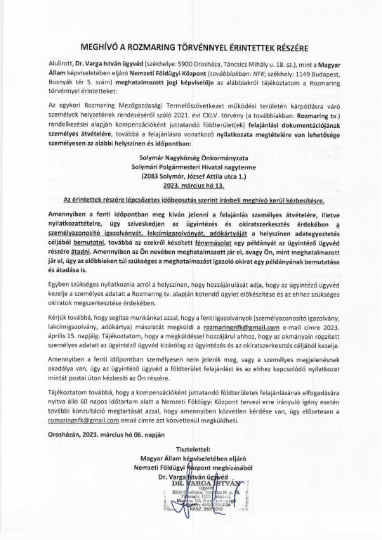 Meghívó a Rozmaring törvénnyel érintettek részére