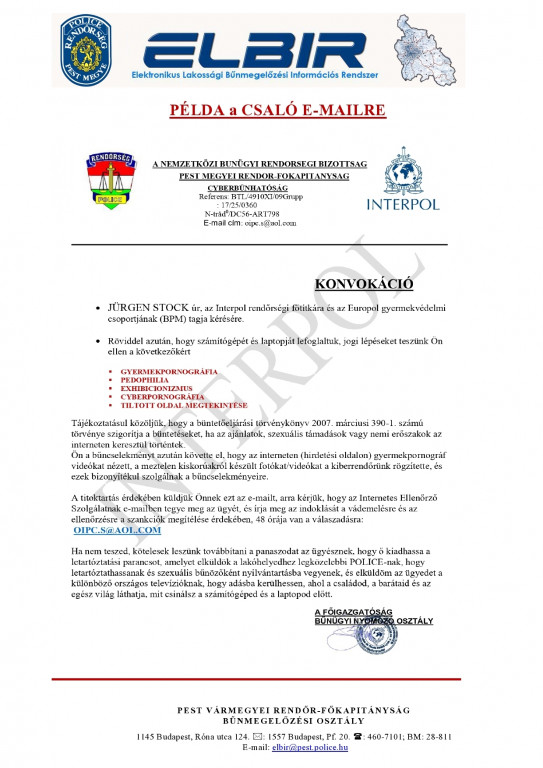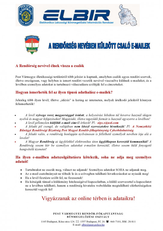 Rendőrség nevében küldött adathalász e-mailek