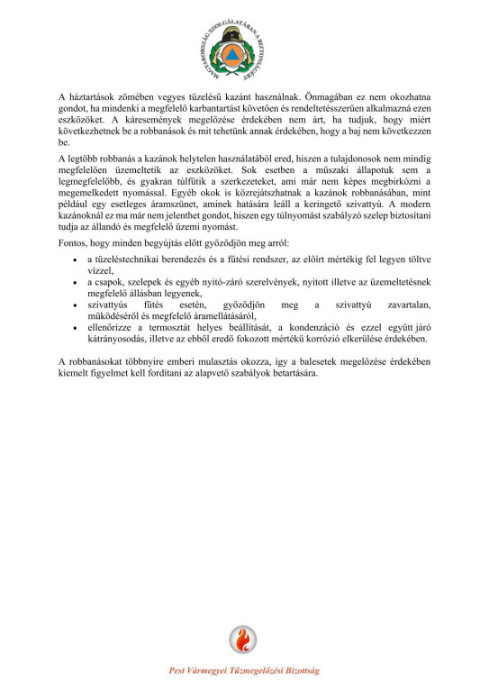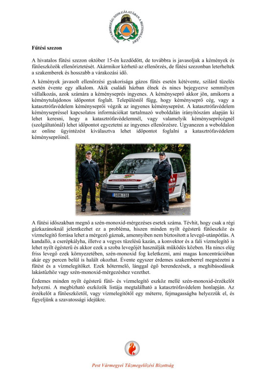 Tájékoztatás a fűtési szezonban bekövetkező tűzek megelőzéséhez!