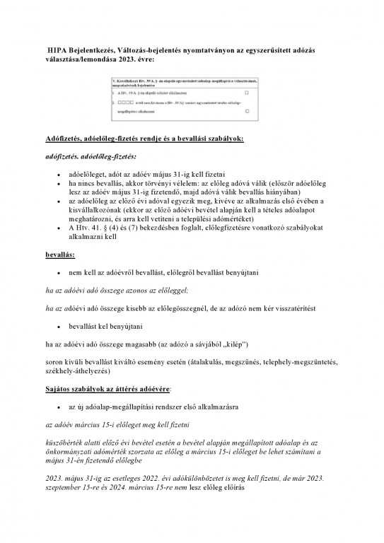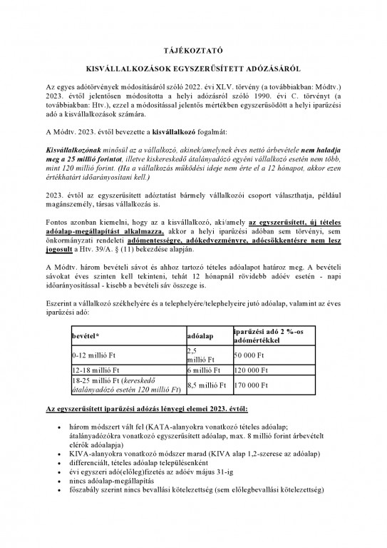 Tájékoztató kisvállalkozások egyszerűsített adózásáról