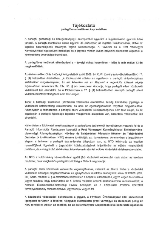 Tájékoztató parlagfű-mentesítési kötelezettségről!