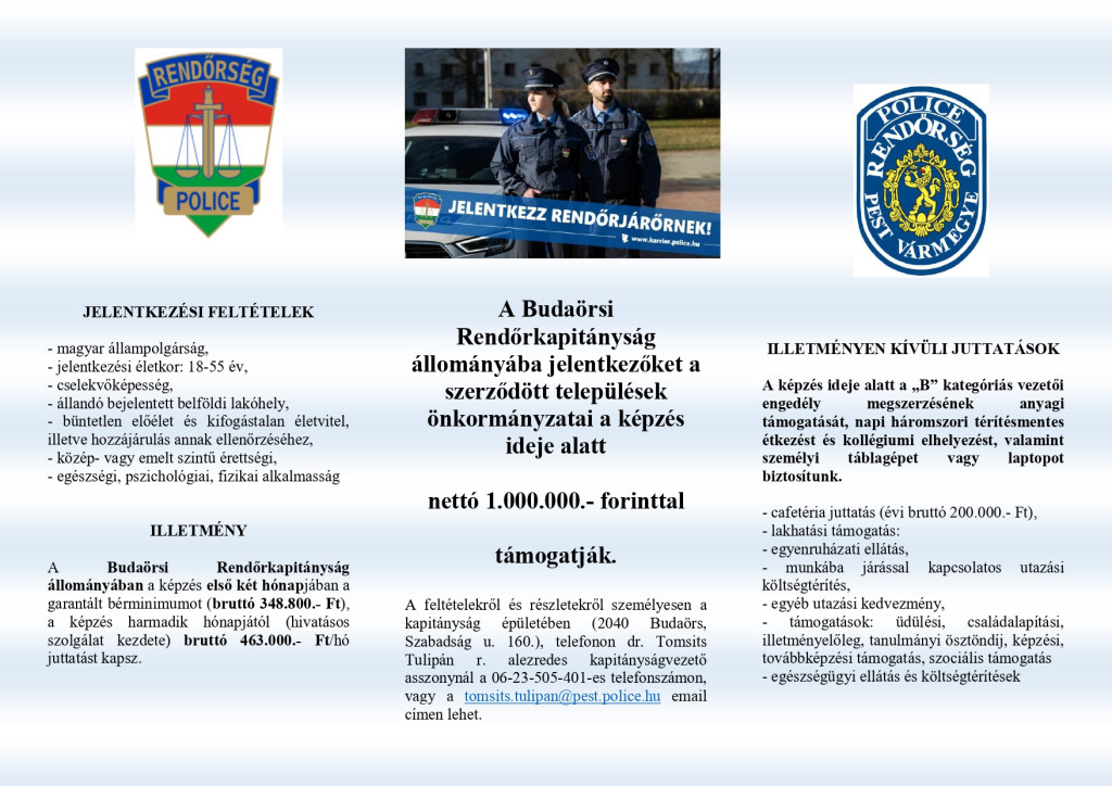 Toborzást hirdet a Budaörsi Rendőrkapitányság.