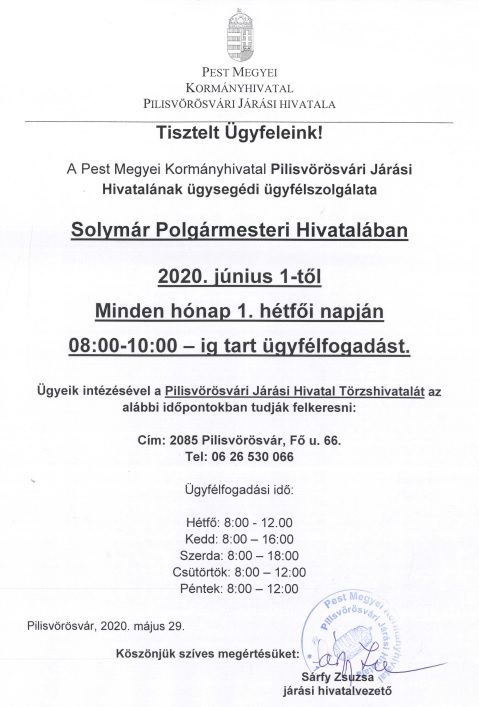Hétfő: 8:00-12:30; 13:00-18:00 / Kedd: 8:00-12:30; 13:00-16:00 / Szerda: 8:00-12:30; 13:00-16:30 / Csütörtök: 8:00-12:30; 13:00-16:00 / Péntek: 8:00-13:30