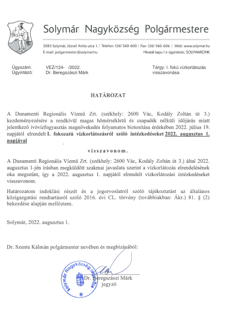 Vízkorlátozás visszavonása